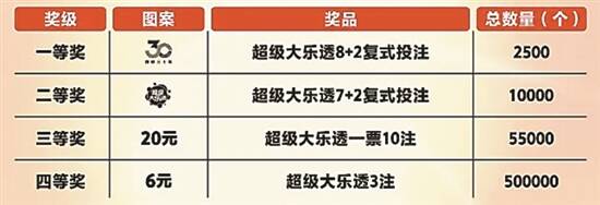 据悉,活动整体中奖概率初始为40%,根据活动情况动态调整。具体奖品列表如右表。“8+2”是指前区选择8个号码,后区选择2个号码的复式投注,“7+2”同理。