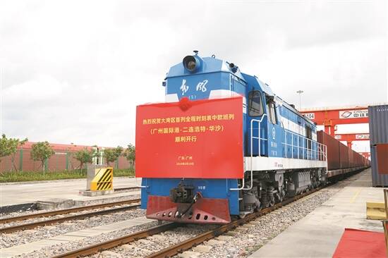 羊城晚报讯 记者黄婷、李志文报道:6月19日上午11时,伴随一声汽笛划过长空,粤港澳大湾区首列全程时刻表中欧班列从位于广州白云区的广州国际港开出,经由二连浩特口岸出境,驶向万里之外的波兰华沙。这是大湾区首列全程时刻表中欧班列,也是全国首列经二连浩特口岸出境的全程时刻表班列,可实现与高铁一样准时发运、准时抵达,揭开了广东中欧班列高质量发展的新篇章。