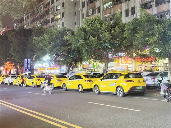 随着时间推移,路边停放的车辆越来越多,记者在晚上9时离开时,道路尚能勉强通行。但长期将出租车违停在此处的司机刘师傅告诉记者:“到了(凌晨)两三时,几个车道都是停车的。”