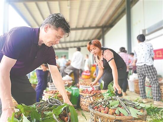 羊城晚报讯 记者赵映光、通讯员潮南宣摄影报道:近日,“粤东荔枝之乡”汕头市潮南区雷岭镇迎来荔枝集中采收的季节,记者了解到,尽管受此前极端天气影响,加上荔枝“小年”,今年的雷岭荔枝产量有所下降,价格有所上扬,但仍受到众多海内外市场的青睐。6月17日,雷岭镇首批总重2.5万公斤荔枝“启程”销往北美地区,这是该镇荔枝连续20年销往北美市场。