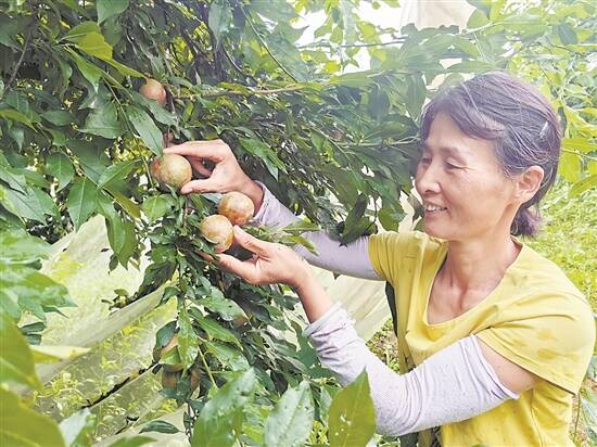 魏爱芳正在采摘麒麟李