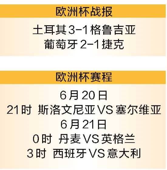 过去五届欧洲杯,C罗每届都有进球,以14个进球在欧洲杯正赛总射手榜上排名第一。对C罗来说,实现连续六届欧洲杯都有进球应该不是难事,因为小组赛另外两个对手土耳其和格鲁吉亚的球风都更为追求进攻,并不是“摆大巴”的球队。去年9月8日在欧预赛中,格鲁吉亚曾在主场以1比7惨败于西班牙,C罗在6月27日对格鲁吉亚的小组赛第三轮比赛中会很有机会。