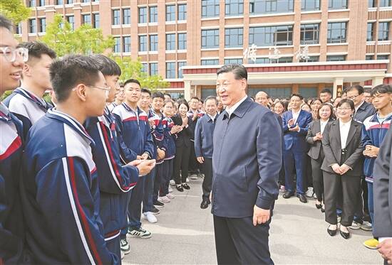 教学楼前广场上,师生们纷纷围拢过来,高声向总书记问好。习近平亲切地对大家说,我到西宁第一站就来看望老师和同学们。上海援建的这所中学,培养来自果洛牧区的各民族孩子,成效明显,意义深远。希望孩子们倍加珍惜这里的良好条件,心怀感恩、好好学习,德智体美劳全面发展,立志成为中国特色社会主义事业的接班人和建设者,努力为自己赢得人生出彩的机会。他祝孩子们学有所成、健康成长。