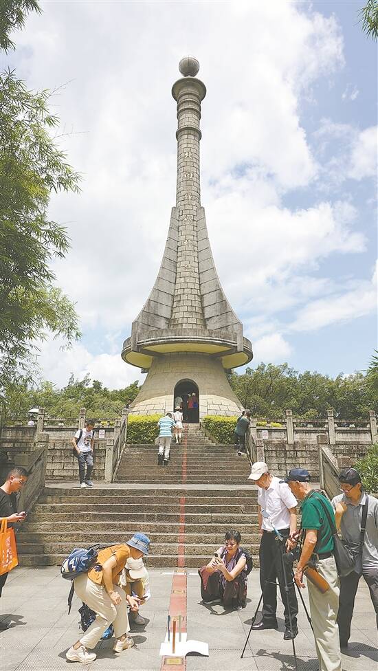 昨日夏至,广州街坊和各地天文爱好者纷纷聚集在从化北回归线标志塔公园,用各种方法观察和记录夏至日立竿不见影的天文现象。