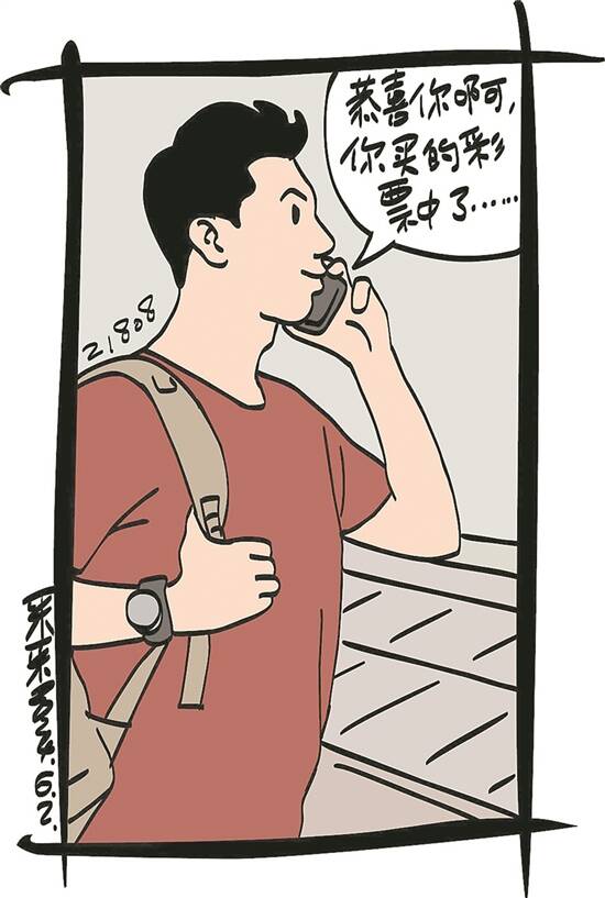 第二天刚下火车,大梁就接到投注站大姐的电话,大姐在电话里高兴地说:“小伙子恭喜你啊,你买的彩票中了三等奖。你如果相信我,就加我微信,我把地址发给你,你把彩票寄给我……”