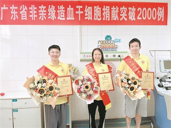 6月26日上午,广东三名志愿者捐献造血干细胞,分别救助三位白血病患者。至此,广东非亲缘造血干细胞捐献总数在全国率先突破2000例。