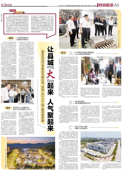 省政协常委曹志伟建议,鼓励引导民营企业到县城投资增设分公司,吸纳就业人口,通过建设产品批发集散市场和线上交易平台、建设特色产业园等投资,发展第二、第三产业。