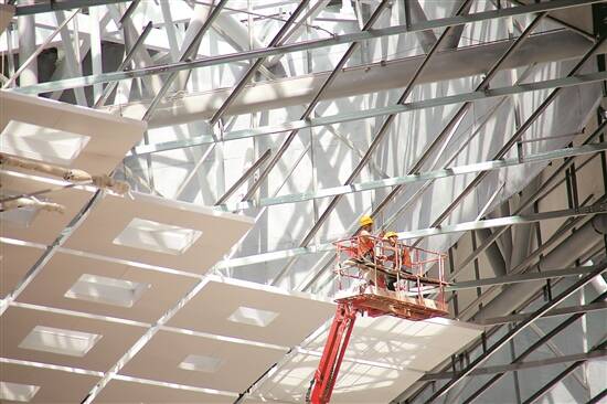 记者当天在项目施工现场走访时看到,项目内部的钢结构纵横交错,多根“榕树”造型的支撑柱高高擎起整个屋盖,屋面中间设置有具备采光功能的10个“钻石”天窗,工人们在现场操作着各种设备,按照相关节点安排有序施工。