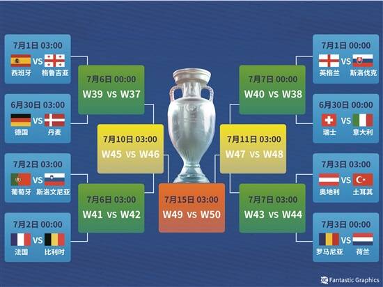 欧洲杯将于6月30日凌晨开始1/8决赛,每天两场晋级或者回家的精彩对决,先是上下半区各开两场,然后是葡萄牙、法国、比利时所在的上半区“死亡1/4区”两场比赛,最后是荷兰所在的下半区1/4区两场比赛。按照时间顺序,依次是瑞士VS意大利,德国VS丹麦;英格兰VS斯洛伐克,西班牙VS格鲁吉亚;法国VS比利时,葡萄牙VS斯洛文尼亚;罗马尼亚VS荷兰,奥地利VS土耳其。
