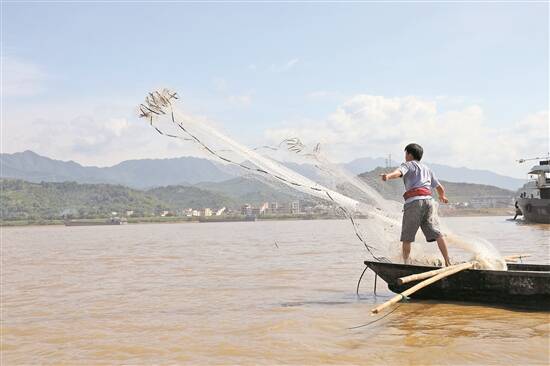 7月1日,为期4个月的西江伏季休渔期正式结束,渔民驶进西江撒网捕鱼 刘烁 摄