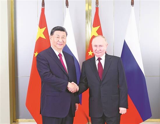 习近平指出,今年5月,普京总统成功对中国进行国事访问,在中俄建交75周年的重要历史节点,我们共同为两国关系下一步发展作出规划和部署。面对变乱交织的国际形势,双方要继续秉持世代友好的初心,坚守造福人民的恒心,不断涵养中俄关系的独特价值,挖掘两国合作的内生动力,为维护两国正当权益和国际关系基本准则作出新的努力。