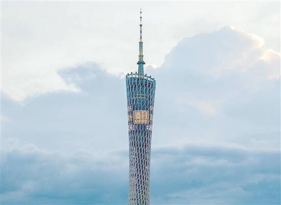 7月3日傍晚,广州市气象台通过广州塔发布高温黄色预警信号