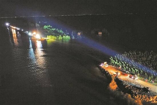 坚决守好距决口处约9公里的钱团间堤“第二道防线”是另一项重要任务。目前,现场已调配3000余人、50余台工程车辆、18台挖机进行清基扫障、铺设彩条布、装填砂袋等加固工作;对间堤进行拉网式排查,确保风险隐患早发现、早处理;架通线路,保证照明及设备运转;管控防汛通道交通秩序,确保抢险通道畅通。