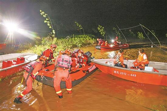 6日凌晨,抢险人员在湖南省岳阳市华容县团洲垸开展救援工作 新华社 发