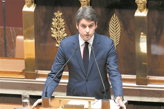 2024年1月30日,法国总理阿塔尔在位于巴黎的法国国民议会发表演说 新华社发
