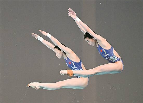 全红婵/陈芋汐(左)在比赛中 新华社发