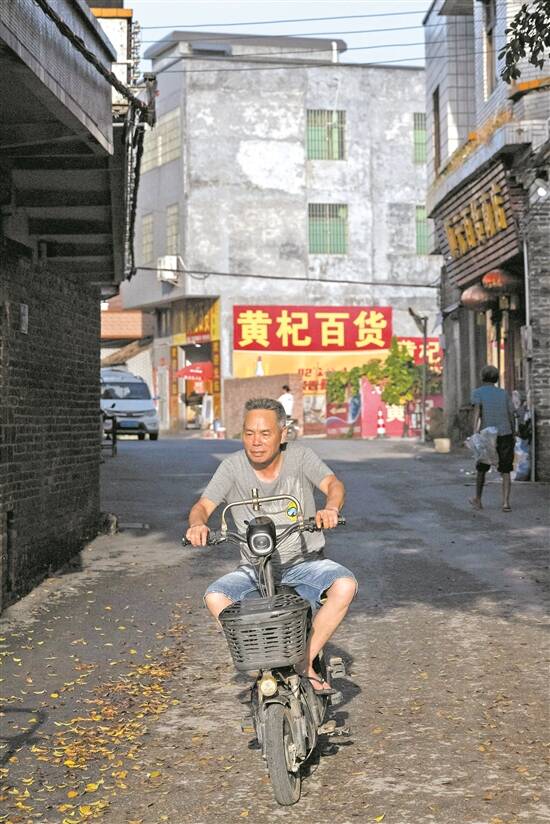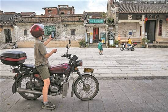 古村有各个时代的生活印记。村民骑行在塱头古村的道路上,怡然自得