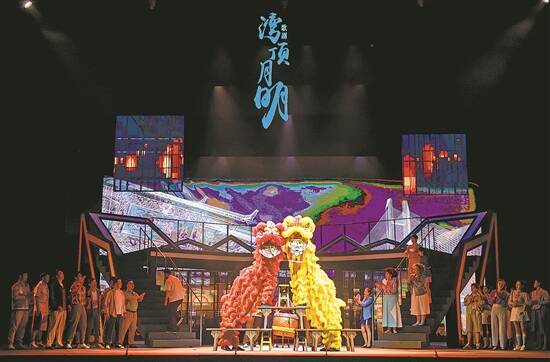 值得一提的是,在歌剧场景设计中,展现了不少黄埔非遗元素。比如深井烧鹅、醒狮、大盆菜、发红包、长桌宴、乞巧节等。“这部歌剧很黄埔!作为黄埔人,我感觉很亲切。”观赏完歌剧首演的观众林先生表示,《湾顶月明》在舞美、服化道上,都有着非常强烈的广东地域特色,也可以说是一次很好的广东传统文化传播。