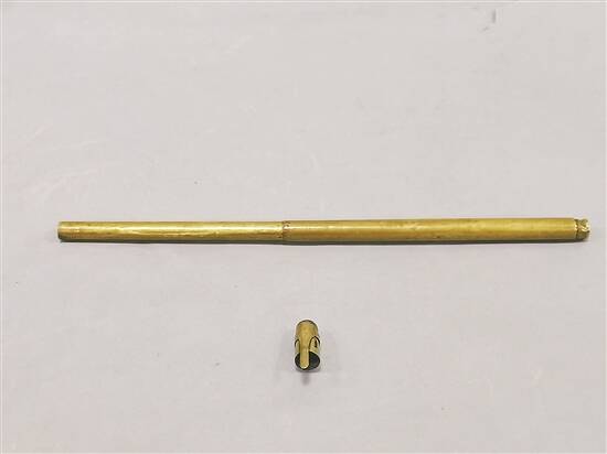 她介绍,这根铜制的、抽拉式的、钢笔式的、重约50克、总长47厘米的指挥棒,由冼星海先生从法国带回。