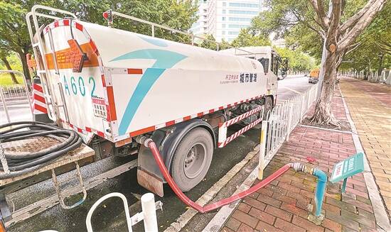 广州猎德净水厂,环卫作业车取用再生水 梁怿韬 摄