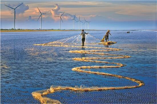 把目光移向更南的徐闻县,新寮岛如屏风一般横在该县东部海域,是湛江东海岛、南三岛、硇洲岛之后的第四大岛。在岛屿东部的后海村,有长达20公里的银滩,长滩上绵延着12公里的风电矩阵,风车忽快忽慢地转动着,在这里,人们可以捕捉到风的形状。