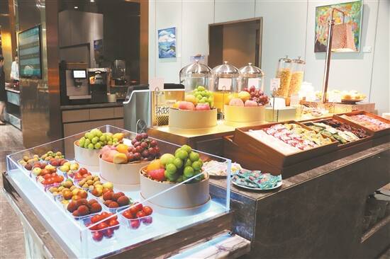 休息室引入节日特色菜品,加入季节性水果和饮品