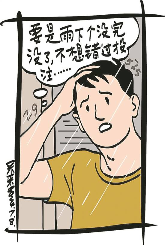 这时,雨停了,刘杰这才发现,分不清是雨水还是汗水在脸上肆意流淌。来不及擦拭,刘杰迈开大步,雨过天晴,街头的路灯点亮了夜色斑斓。来到投注站,刘杰下意识一摸钱包,彩票居然被淋透了,成了一个纸团,根本看不清数字。刘杰习惯了追号,但他也没刻意去记5组号码。购彩没有规律,刘杰一向对中奖看得很淡,赶紧重新写了5组彩号。(袁斗成)