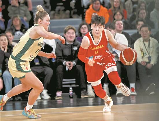 中国队球员杨舒予(右)在比赛中带球突破 新华社发