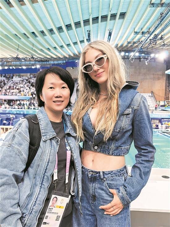 中国跳水运动员陈艺文/昌雅妮在巴黎奥运会为中国队夺得第二面金牌,羊城晚报记者在现场偶遇冬奥会冠军谷爱凌,她身穿时尚的露脐牛仔装,戴着白色墨镜,为两位中国运动员点赞,连说了三个“完美”:“跳得太精彩了,跳得很精致,完美、完美、完美,开心!”