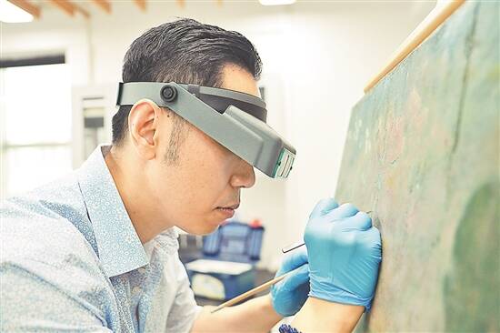 了解画作是修复的第一个重要步骤。化学专业出身、从事艺术品修复工作18年的广东美术馆艺术修复部副主任莫述文介绍,艺术品修复工作依靠人的专业知识和手工技巧,更应充分利用现有科研器材。显微镜、紫外线、红外线和X射线,以及XRF光谱仪、光纤光谱仪等科技手段的运用能帮助修复师检测画作,揭示肉眼看不见的症结,以确定最佳修复方案。
