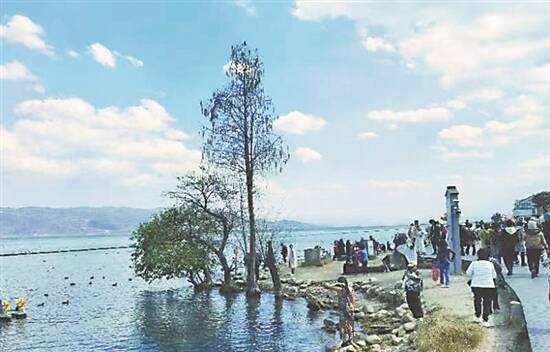 洱海南北走向长40多公里,东西宽不到10公里,形似长长的耳朵,安放在苍山东面,海岸线弯弯曲曲,海中岛屿星罗棋布。我总是流连在洱海边,看清澈见底的湖水,被徐徐而来的清风吹起一波接一波的涟漪;看浑身洁白的海鸥,在枝条摇曳的枯柳下来回展翅;看晴朗的天空、雪白的云朵,倒映在纯净的水面,构成一幅清纯洁白的美丽画卷。我常常走在龙龛古码头,穿过“海月”石牌坊,迎面吹拂着“下关风”,只感觉滔滔洱海畔,全是大理的风花雪月、古镇的风情万种,一草一木都带着诚心诚意,只为让游客们心满意足。