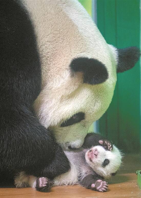 长隆野生动物世界为“萌帅酷”举办了隆重的庆生活动,三胞胎之一“萌萌”如今已经做了妈妈 羊城晚报记者 邓勃 摄