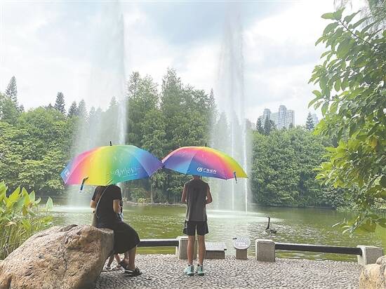 针对暑期高温天气情况,各公园纷纷增设遮阳避雨棚(伞)、遮阳避雨休息区域和休息座椅等降温避雨设施,防止高温中暑;同时,根据暑期客流量情况增加保洁服务,加密垃圾清运频次,保障平价水等防暑降温饮料与轮椅、药箱等供给,加大公园基本服务扩容,提升市民游园舒适度。广州珠江公园还增设了200把爱心“漂流伞”,供市民游客在园区中免费使用。