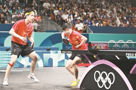孙颖莎/王楚钦(左)在比赛中 羊城晚报特派巴黎记者 林桂炎 摄