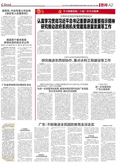 近年来,广东各地各部门精心谋划、周密部署,突出重点群体,注重广泛覆盖,强化互动参与,以“线上宣传+线下活动”“现场观摩+军事实训”“主题宣讲+文艺展演”“参观展览+互动体验”等多种方式,推动国防教育进机关、进学校、进企业、进社区、进乡村、进军营、进网络,有力营造了关心国防、热爱国防、建设国防、保卫国防的社会氛围,不断推进全民国防教育走深走实,为扎实推进中国式现代化的广东实践贡献力量。