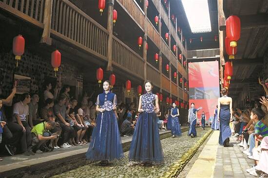 2024年7月,“百年围楼 国潮兴生”非遗国际时装秀在韶关始兴县罗坝镇长围村举办 李泽宇 摄