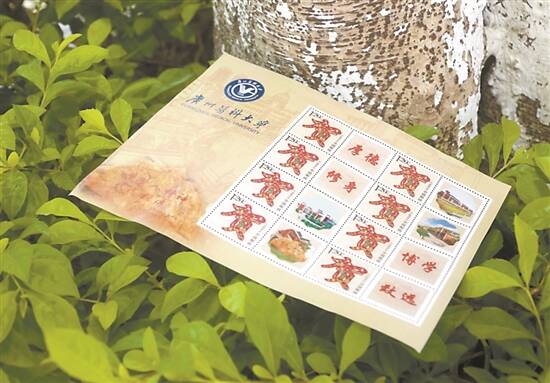 通知书礼盒采用广医经典蓝作为底色,正面是校园标志性建筑的彩绘,并搭配“厚德修身 博学致远”的广医校训。打开广医蓝盒,耀眼的录取通知书出现在眼前,录取通知书三层立体剪裁设计的大门欢迎来自五湖四海的新广医人,汇聚于此。翻开内页,一张张融入校园建筑元素的邮票,尽显迷人的校园风光,为新生送去最诚挚的祝福。