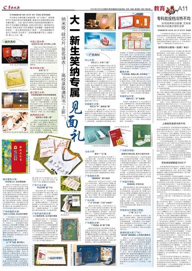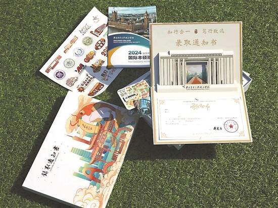 作为新生与高校建立连接的第一份“见面礼”,录取通知书不仅是对新生的诚挚邀请,更是向社会展现高校自身形象的窗口。日前,省内外高校已陆续发放录取通知书,其中可见校徽纪念章盲盒、全息光学石英片、高性能间位芳纶纸、仅有头发丝1/300厚度的“金色薄膜”、明星球员签名球衣……各大高校纷纷亮出“绝活”,一封封录取通知书成为了学校的“文化名片”,这些独属浪漫不仅让人眼前一亮,更让人心头一暖。