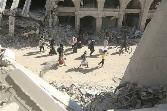 8月8日,在加沙地带南部城市汗尤尼斯东部地区,人们在以色列发出疏散警告后撤离 新华社发