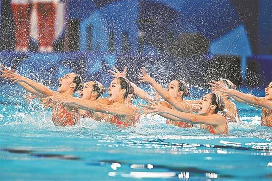 中国花样游泳队的表演近乎完美 羊城晚报特派巴黎记者 林桂炎 摄