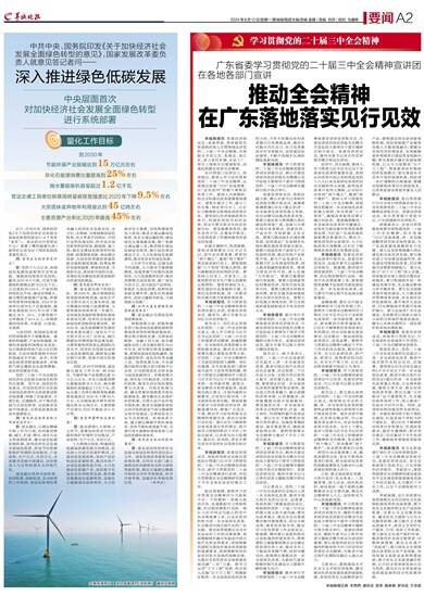 党的二十届三中全会就加快经济社会发展全面绿色转型作出部署。党中央、国务院印发意见,对加快经济社会发展全面绿色转型作出系统谋划和总体部署,明确了总体要求、主要目标、实施路径,对于推动发展方式绿色转型、全面推进美丽中国建设、实现高质量发展具有重要意义。