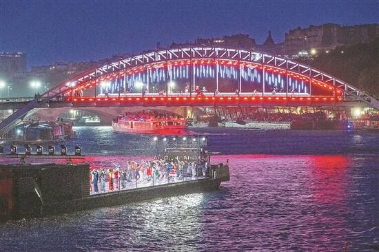 奥运会开幕式上,运动员们搭乘船只从奥斯特里茨桥出发,沿着塞纳河途经巴黎圣母院、卢浮宫等标志性建筑,抵达特罗卡德罗广场参加庆祝仪式