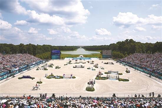 观众可以在宽阔壮观的凡尔赛宫观赏马术比赛