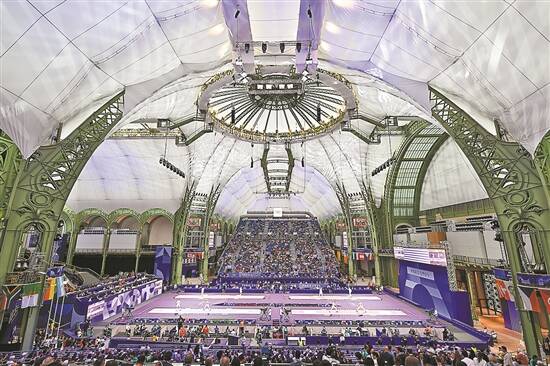 巴黎大皇宫被改装成击剑比赛场馆,高耸的穹顶气势磅礴