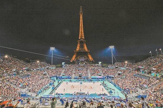 观众可以在举世闻名的埃菲尔铁塔下观赏沙滩排球