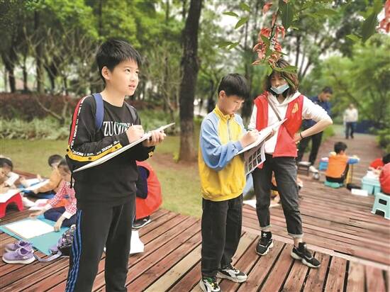 孩子们在广东三水云东海国家湿地公园开展自然笔记学习 省林业局提供