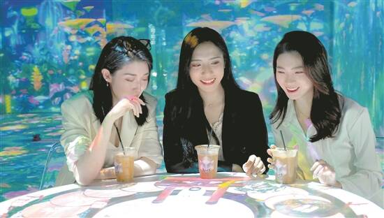 当步入Z-BOX,光影变幻,色彩斑斓,虚实莫测。广州新起典文旅科技有限公司副总裁刘振宏向记者介绍,Z-BOX运用了尖端的虚拟现实(VR)、增强现实(AR)和互动投影技术,为游客打造了一个超越现实的数字世界。更为重要的是,Z-BOX不仅是一个科技展示平台,更是一个多元化的消费空间,可以根据客户的需求,利用多媒体声光电可变、多变的特质,在同一个物理空间中灵活切换组合不同的功能模块,提供了演艺、娱乐、展览、研学、餐饮、新零售等多种业态。刘振宏表示,模块化、标准化、低成本、可复制是Z-BOX的优势,可以“制宜不因地”地复制至线下商业综合体、文旅景区、创意产业园区等空间。
