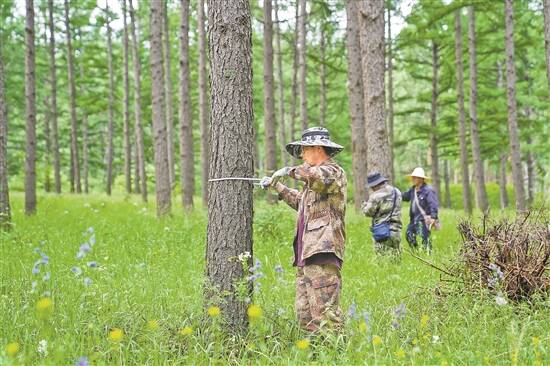 塞罕坝机械林场林业调查规划设计院工作人员为树木做“体检” 羊城晚报记者 梁喻 摄