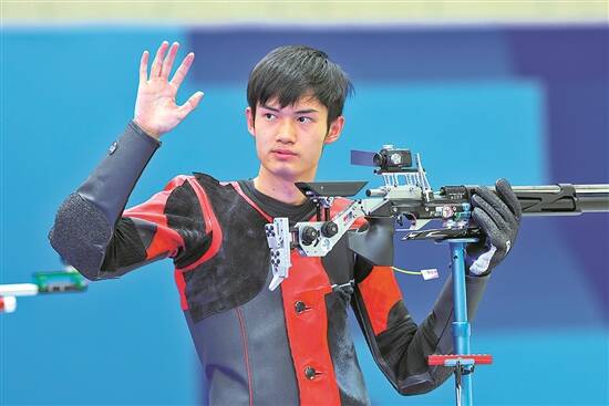 盛李豪在射击混合团体10米气步枪项目中夺得金牌:男子10米气步枪决赛中,以252.2环的成绩夺得第二金并打破奥运会纪录。