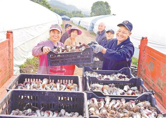 在乳桂经济走廊沿线的一六镇,赤松茸迎来大丰收